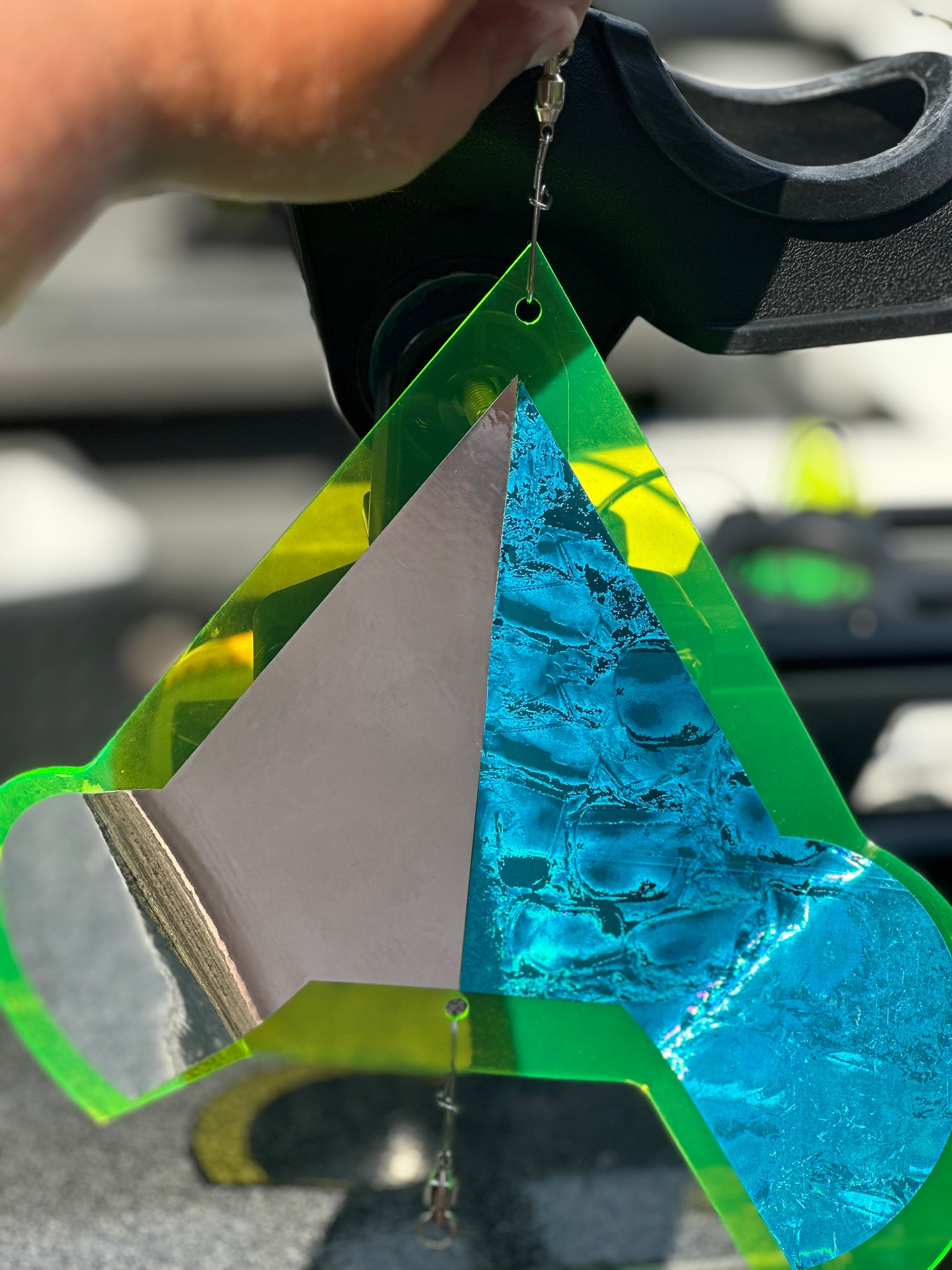 The stealth flasher is nothing like what's on the flasher market. Bigger surface along with the wings it puts out a very unique flash and vibration. This flasher excels in all water conditions and in a variety depths. It especially works in upper rivers with warm water. Available in different colors and we also have them available in blanks for you to create your own color pattern! Check them out down below!